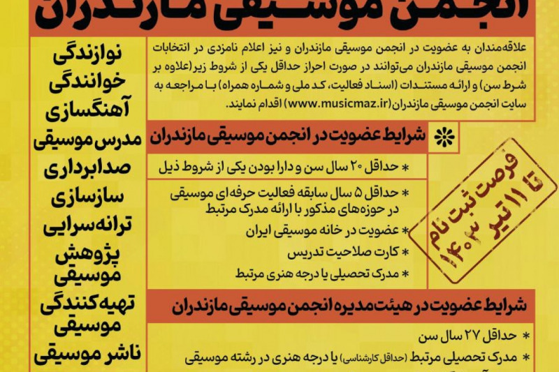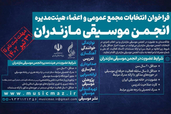فراخوان انتخابات مجمع عمومی و اعضای هیئت مدیره انجمن موسیقی استان مازندران