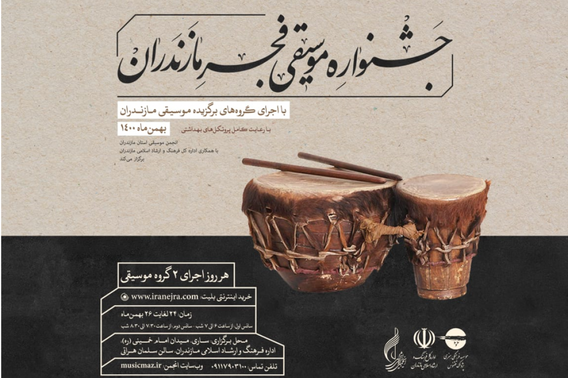 جشنواره موسیقی فجر استان مازندران با تاخیر به علت شرایط کرونایی در تاریخ های 25 ، 26 ، 27 اسفند ماه 1400 با حضور 6 گروه موسیقی محلی مازندران برگزار گردید